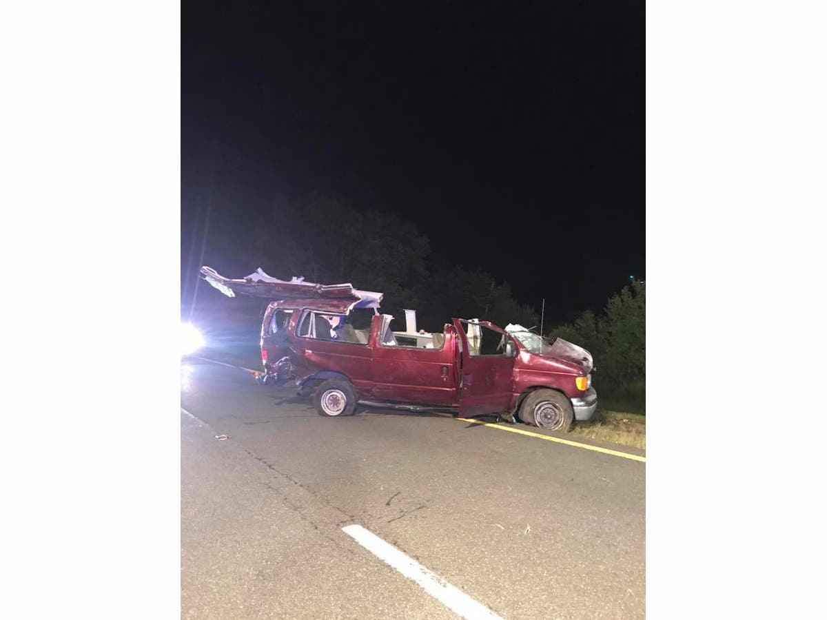 Thirteen people were in the Ford Econoline van when it crashed at about 11:30 p.m.; two were ejected and all of whom were taken to the hospital, authorities said in an NJ.com report.