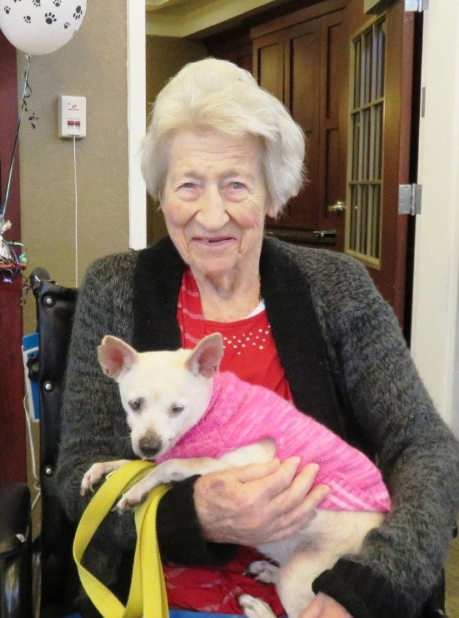 CUTLINE: Heritage Manor Resident Edna Hughes holding Tofu