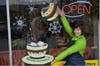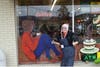 Many Advanced Placement and honors arts students from Indian Hills High School painted holiday and winter scenes on windows of storefronts at the Copper Tree Mall Tuesday.