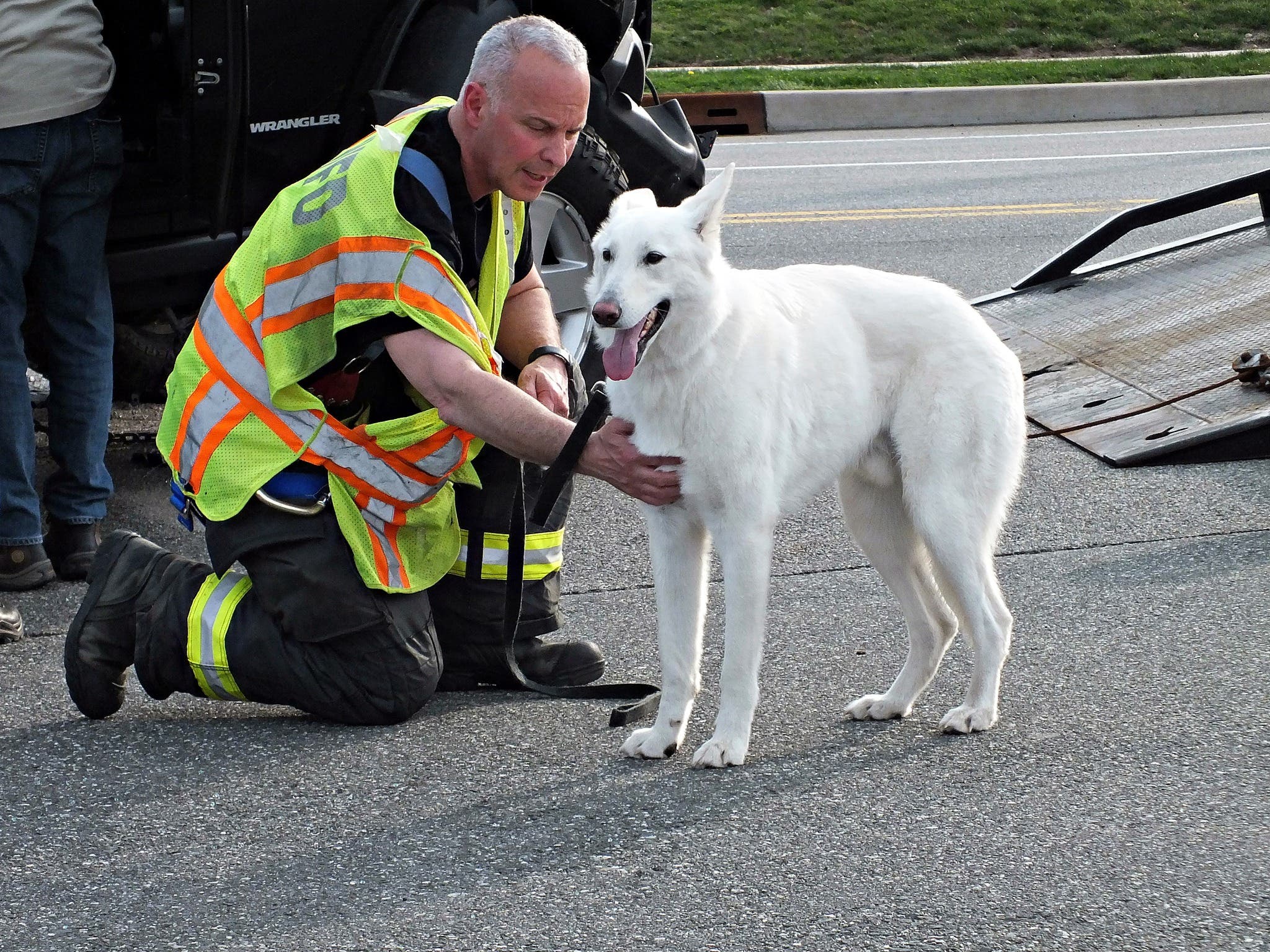 After she stopped to help, someone lifted her atop the Jeep so she could help get the driver and dog out, the story said.