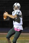After several successful series of carries downfield, Wayne Valley quarterback Mike Eckrote tossed a touchdown pass to Luke Primerano to close the gap.