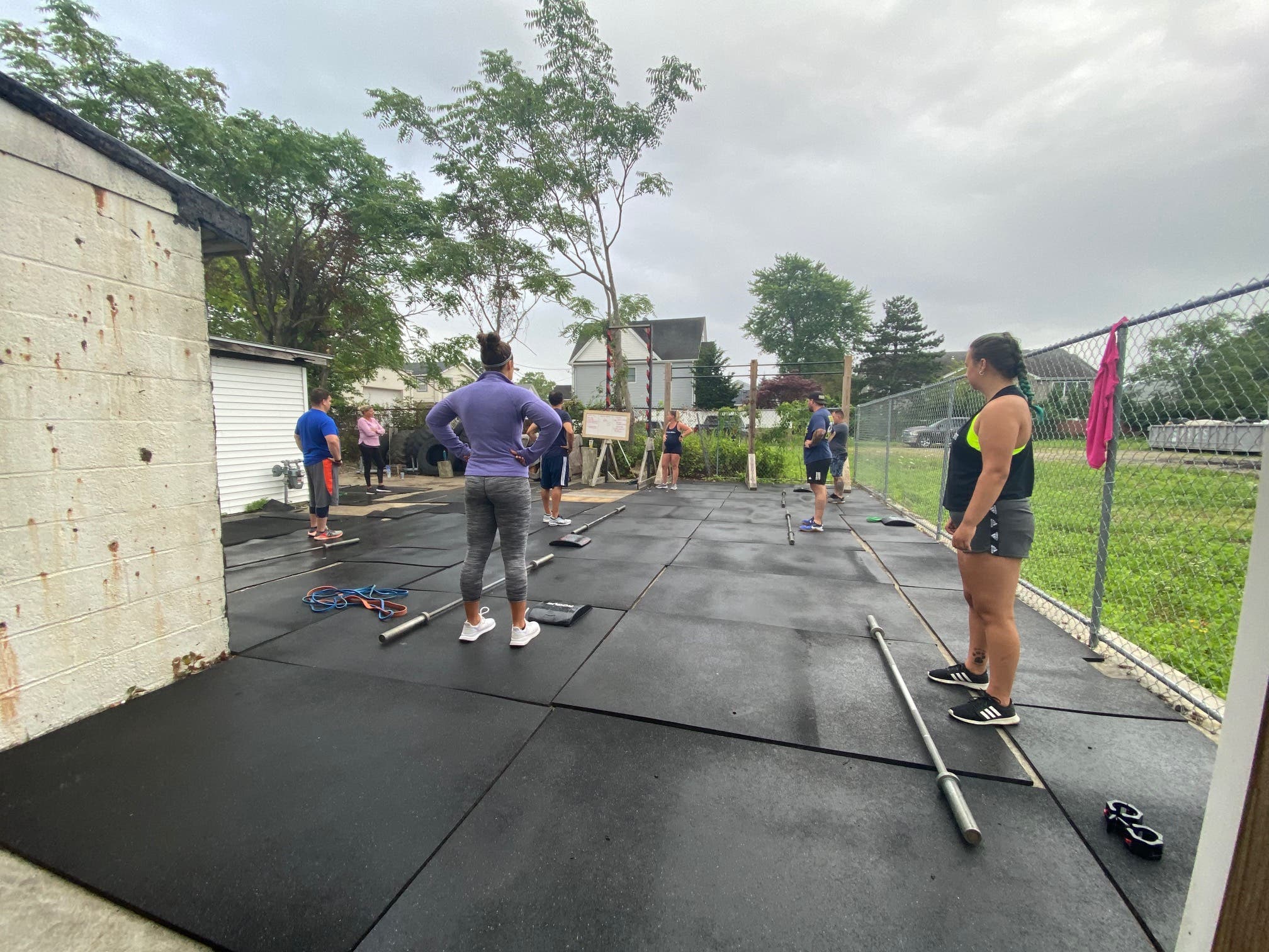 "Having run classes in this manner for almost two months now, the system we have in place is working efficiently while minimizing risks for our members," she told Patch. "When we return indoors we will have 6 foot boxes laid out on the floor to maintain safe social distancing during workouts. Unlike conventional gyms, we do not have air conditioning and our two garage doors will remain open to enable better ventilation. We also are vigilant about wiping equipment after each use."
