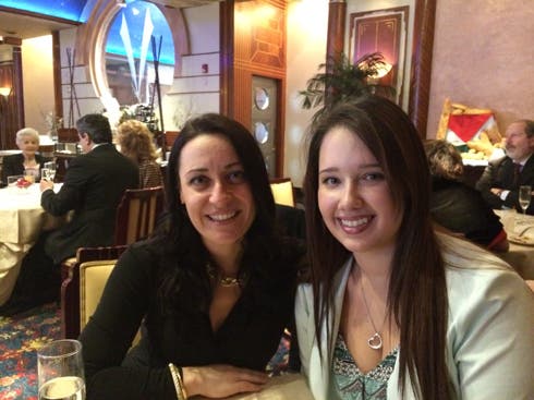 Photo courtesy of Suffolk County Community College: Suffolk County Community College’s Dr. Annamaria Monaco (left), associate professor of Italian and advisor of the Italian Club with 2015 Programma Ponte Scholarship winner Denisse Madrigal.