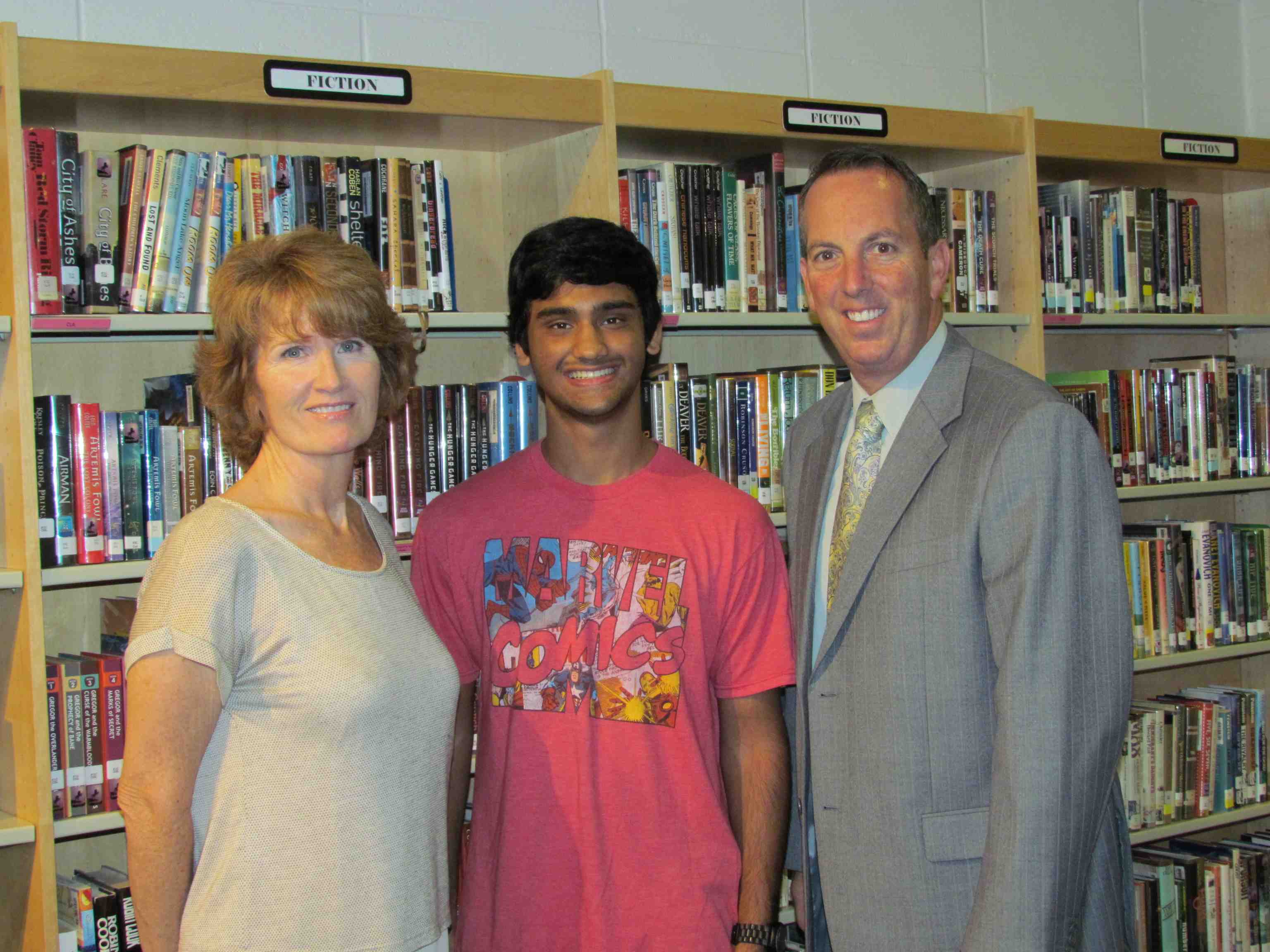 Photo courtesy of the Babylon School District: Pictured with Mohankumar are high school principal Al Cirone (right) and senior guidance counselor Suzanne Murphy.