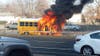 A school bus became engulfed in flames on Sunrise Highway in West Babylon Wednesday morning, police said.