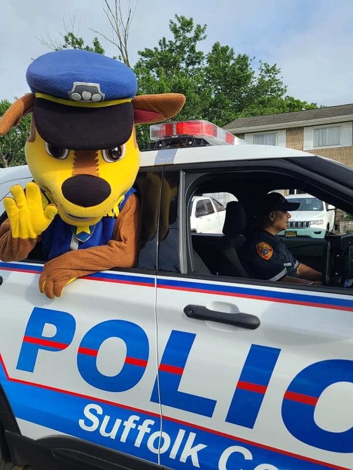 So when her birthday came around on June 18, her grandma decided to plan a special day for her. She reached out to the local Suffolk County police precinct to see if they could make an appearance. That day, officer Peter Rivera led the parade down Kansas Avenue with Chase the paw patrol police dog waving from the back seat and had sirens.
