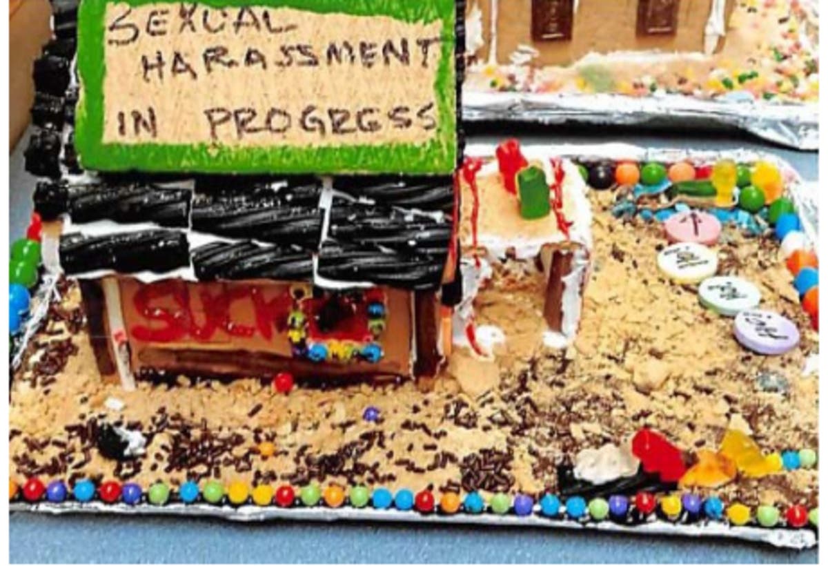 According to the 2015 lawsuit, the gingerbread house had gummy bears placed in "sexual positions," the words “Ho, Ho, Ho” directed toward them, hand-drawn pictures of a hand giving the middle finger and other profanities. It was made by a member and placed in a common area.