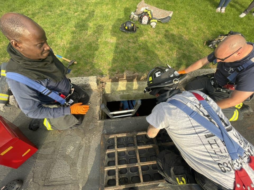 BAY SHORE, NY — Firefighters rescued seven baby ducklings that got stuck in a storm drain in Bay Shore Sunday evening.