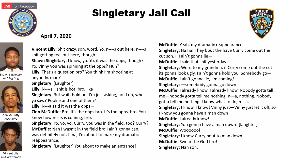 The 77-count indictment also included several non-fatal shootings from the last year, including two back-to-back shootings from October 2019 where the same "community gun" was used to open fire at Hoolie rivals on the streets of Brooklyn.