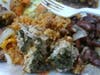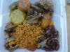 Sides include kidney beans with onions and yellow peppers, and sweet plantains, both of which are extremely tasty. The kidney beans are only slightly cooked, and add a mild, cool texture to some of the more flavorful and heavy dishes. The plantains are decidedly sweet and moist, which I love, and almost taste like a dessert in comparison to the other foods.