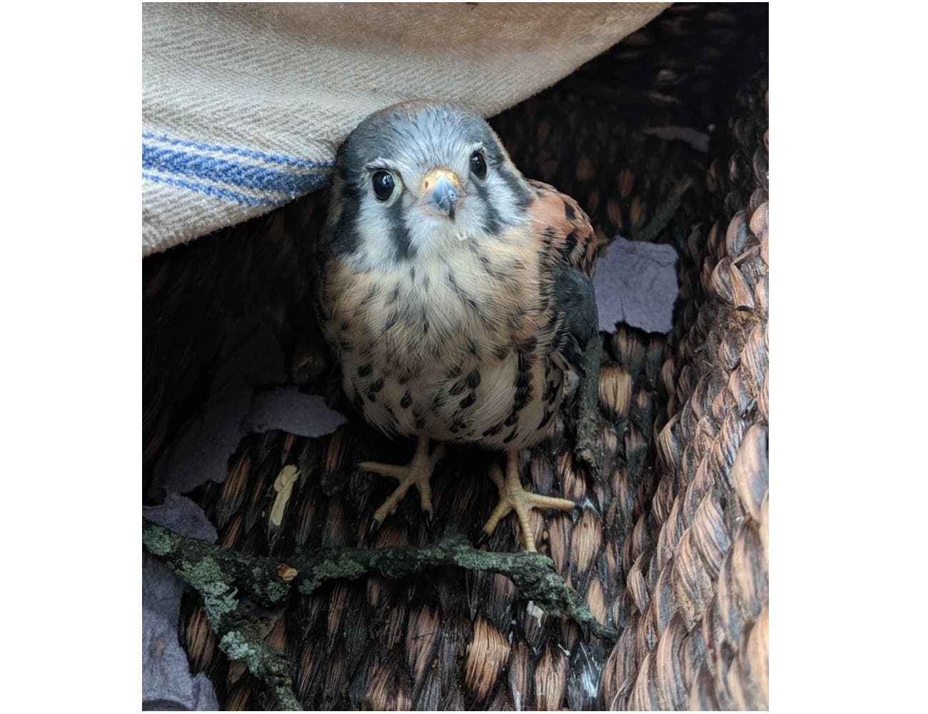 The bird appears to be an immature male kestrel, which is a petite falcon about the same size of a mourning dove, according to an expert from the New York City Audubon.