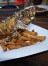 And while the menu has a focus on small playful plates, it also has some excellent and inexpensive main dishes, under the heading “Proteins.” Roast Chicken with a succotash of buttery sweet summer corn, mushrooms, and cherry tomatoes ($13) was perfectly cooked; a whole wild striped sea bass ($16), deep fried -- “A Fish and Chips” on the menu -- was both delicious as it was visually stunning: The fish is delivered upright on a bed of well executed french fries.