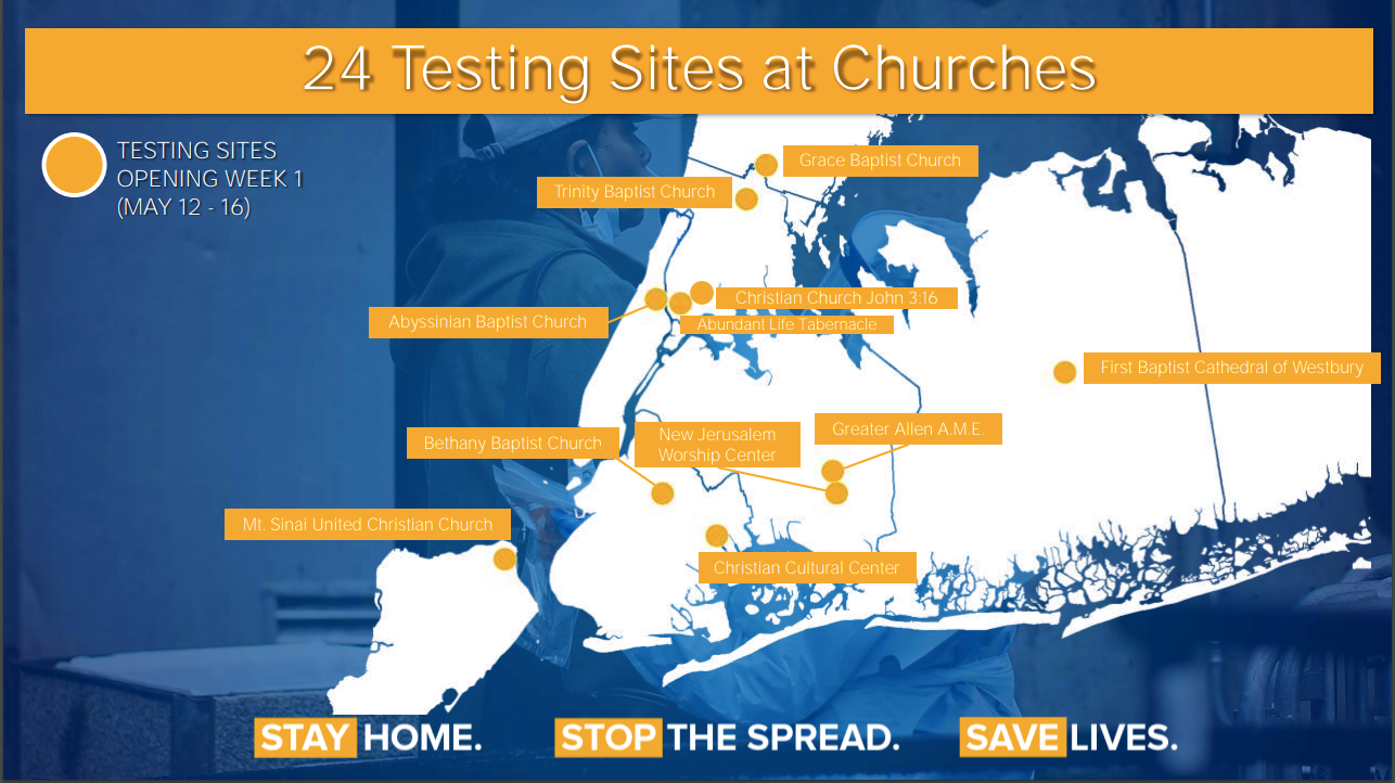 BROOKLYN, NEW YORK — A joint effort to bring new coronavirus test sites into churches aims to address what Gov. Andrew Cuomo called a "cruel fact" — low-income communities and communities of color are paying the highest price in the pandemic.