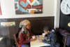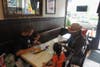 “I’ve been coming here since it opened,” said Darrell Smith, a filmmaker working from his laptop. “I know the owner, I like the camaraderie of the people, and the food is every good. I like the turkey burgers and the vegetable burgers. I even like the chocolate chip and raisin cookies.”
