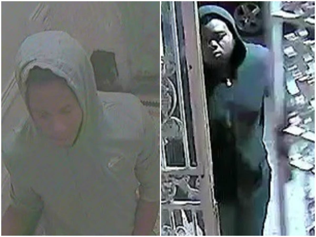 Police are now looking for the heavy-set man in a black hoodie and the slim man in a gray hoodie who can be seen in surveillance footage captured from the building.