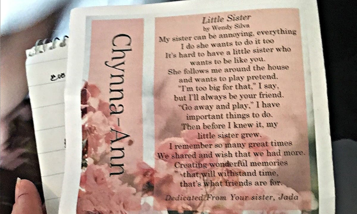 Jada Brown, Battle's older sister, read a poem that recalled the typical problems sisters usually have.