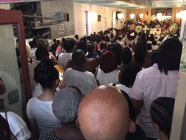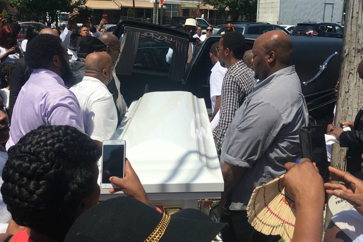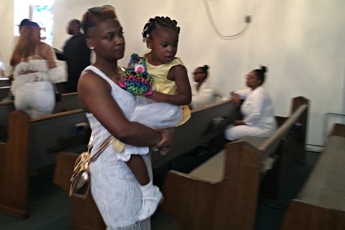 The Full Gospel Tabernacle church was packed with friends and family members dressed in white to honor the 21-year-old mother shot dead outside the Stuyvesant Garden Houses the night of July 12th.