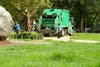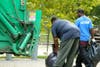 The workers boarded a garbage truck, stopped at every trash bin in the park, emptied them and ignored the litter laying on the ground.