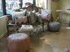 Home furnishings include hand-block pillows, leather Moroccan "poufs" (ottomans) and metallic cowhide rugs. Altieri had done store displays at a home furnishings store so wanted a spot that not only felt comfortable but was aligned with the selective offerings found in the beauty area.