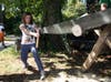 Instead, guests of the Eighteenth Annual Country Fair cheered on swimming swine and the Bedford 1779 Regiment Encampment. Kids rode ponies, sawed trees and made historically-themed crafts.