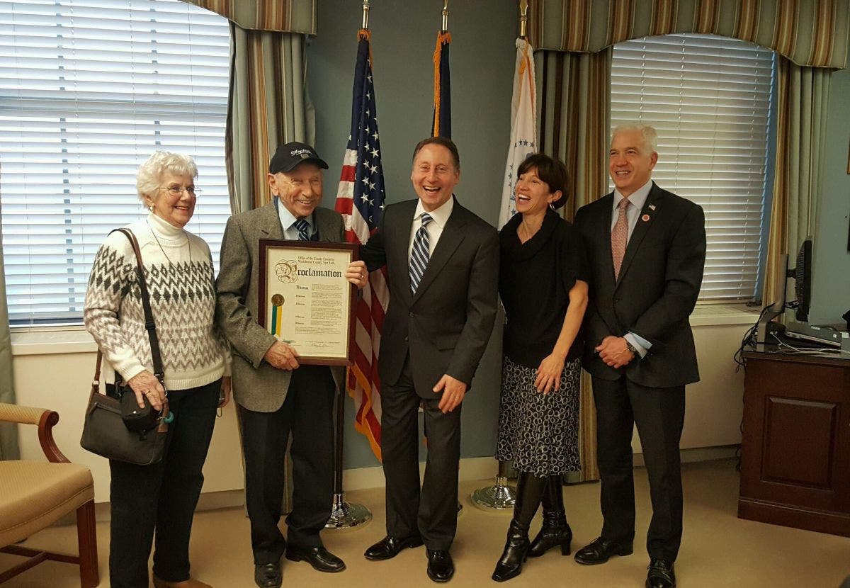 Westchester County Executive Robert Astorino was joined by representatives of ShopRite Supermarket’s Inc., to officially designate Jan. 17 as Dominick DiBari Day to honor 96-year-old World War II veteran, a resident of Briarcliff Manor and employee of ShopRite of Bedford Hills.
