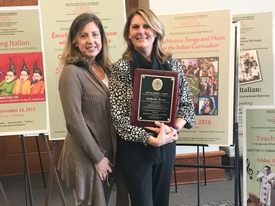 “This annual prestigious recognition of outstanding and creative teaching is funded by Coccia Foundation and the Inserra families under the auspices of the Coccia Institute,” said Dr. Mary Ann Re, Director of the Coccia Institute for the Italian Experience in America at Montclair State University. “The candidates are evaluated and the recipient selected by a distinguished panel of judges in Italian language pedagogy from across the country, as well as in Italy. Brava, Raffaella, and the excellent administration that supports you! The competition was formidable.”