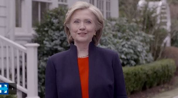 Photo: Hillary Clinton in a screen shot of her campaign launch video via YouTube.com