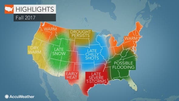The AccuWeather forecast, simply pictured below as “warm,” is backed up by The Weather Channel's look into September, October and November. That forecast says to expect “near or slightly above average” temperatures.