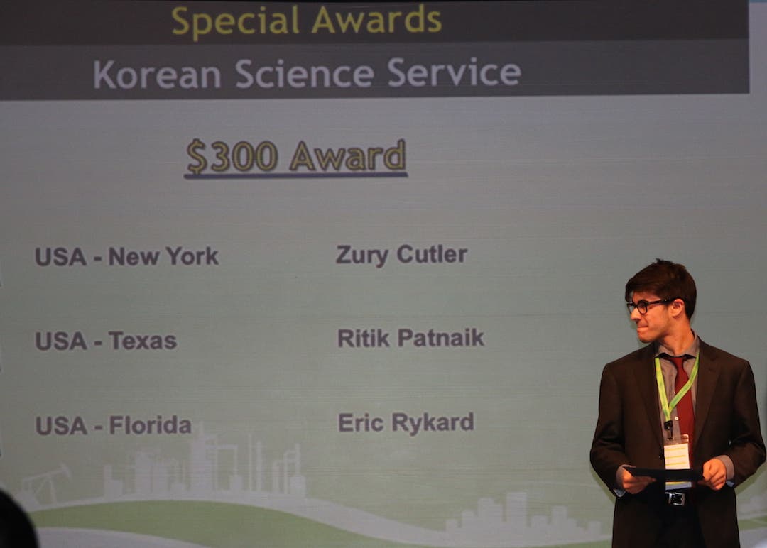 In addition, Cutler garnered two special awards at the competition: the Korean Science Service award and the Consumer Energy Alliance award.