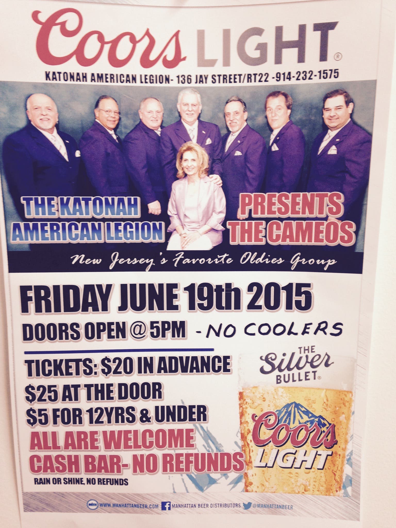 The Katonah American Legion is having an Oldies concert with The Cameos this Friday, June 19.