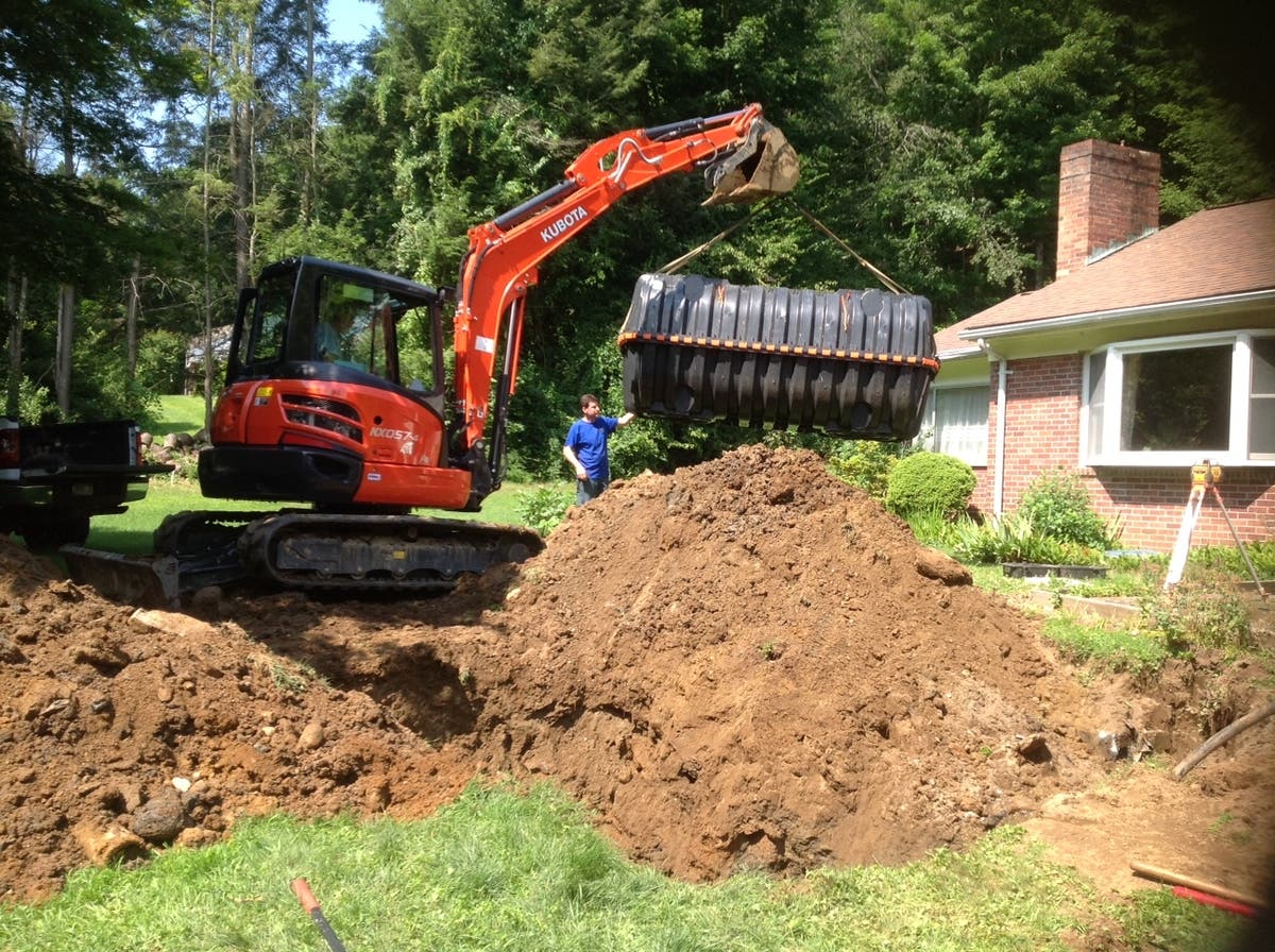 His old tank was pumped, demolished and properly abandoned. Then a new tank was installed and new fields were laid.