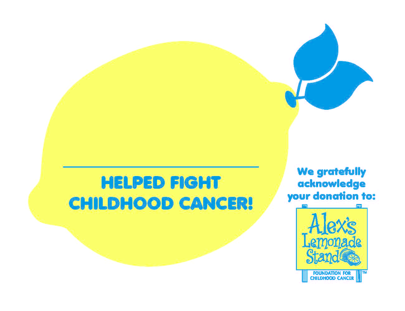 Alexandra "Alex" Scott was born on January 18, 1996 and was diagnosed with childhood cancer just before her first birthday. At age four, she told her parents she wanted to set up a front-yard lemonade stand and give the money raised to doctors to help them find a cure. Her first “Alex’s Lemonade Stand,” held with the help of her older brother Patrick, raised an astonishing $2,000 in one day. While bravely fighting cancer herself, Alex continued to set up lemonade stands every year. In 2004, when Alex passed away at the age of eight, her stand and inspiration had raised more than $1 million towards finding a cure for the disease that took her life. Alex’s Lemonade Stand Foundation was started by her parents in 2005 to continue the work that Alex had begun. Their mission is simple: to raise money for and awareness of childhood cancer causes—especially research into new treatments and cures—and to encourage and empower others, especially children, to get involved and make a difference for children with cancer.