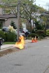 With the gas main shut off, the remaining gas harmlessly burned off. There was no leaking of gas into homes on the block.