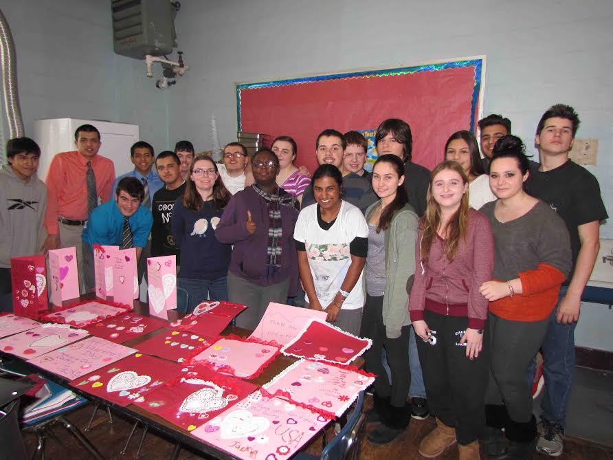 Members of Sanford H. Calhoun High School’s Breakfast Club, with the help of students in the school’s Prep for Life program, recently took time out of their day to make Valentine’s Day cards for veterans.