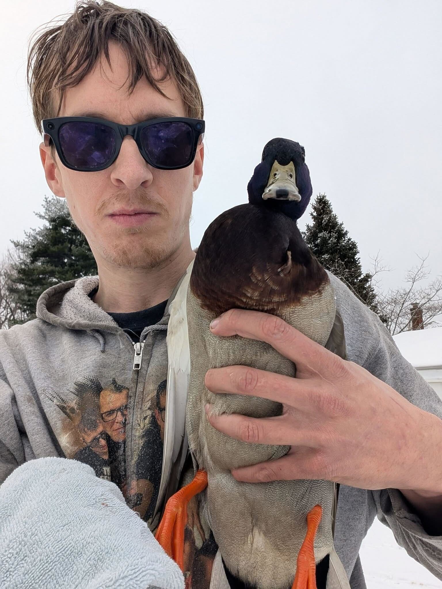 His most common calls involve cats stuck in trees, sewers, or along highways, including injured ones. As snow from this week's blizzard, DeBacker also rescued a goose after Good Samaritans spotted it before it could be buried in the snow.