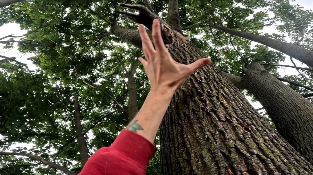 "When I got there, I tried to climb up there," he said. "The kitten jumped into my arms."
