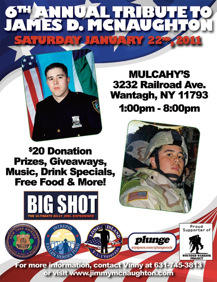 This event is in honor of James McNaughton, a NYPD Officer who was killed in Iraq. Jimmy was a SSG with the Army Reserve's 306th MP Battalion, based out of Uniondale, Long Island. Coming from a family of police officers, he joined the NYPD a little over 8 years ago as a member of the first Police Academy class to graduate after 9/11. James McNaughton, 27, was the first New York City Cop to give his life for his country as a soldier in the line of duty while serving in Iraq.
