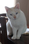 He is white/cream with big blue eyes, neutered and very friendly. If seen/found, please call me at 516-241-1028.