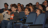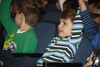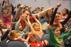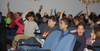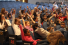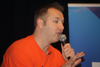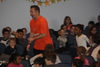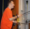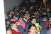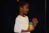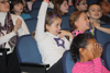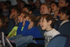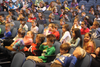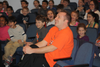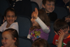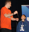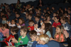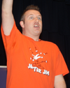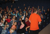 Jim wooed the kids with several different exercises, including trying to make a rectangle with one hand at the same time as making a triangle with the other. He also called both student and teacher volunteers on stage to assist with his act.