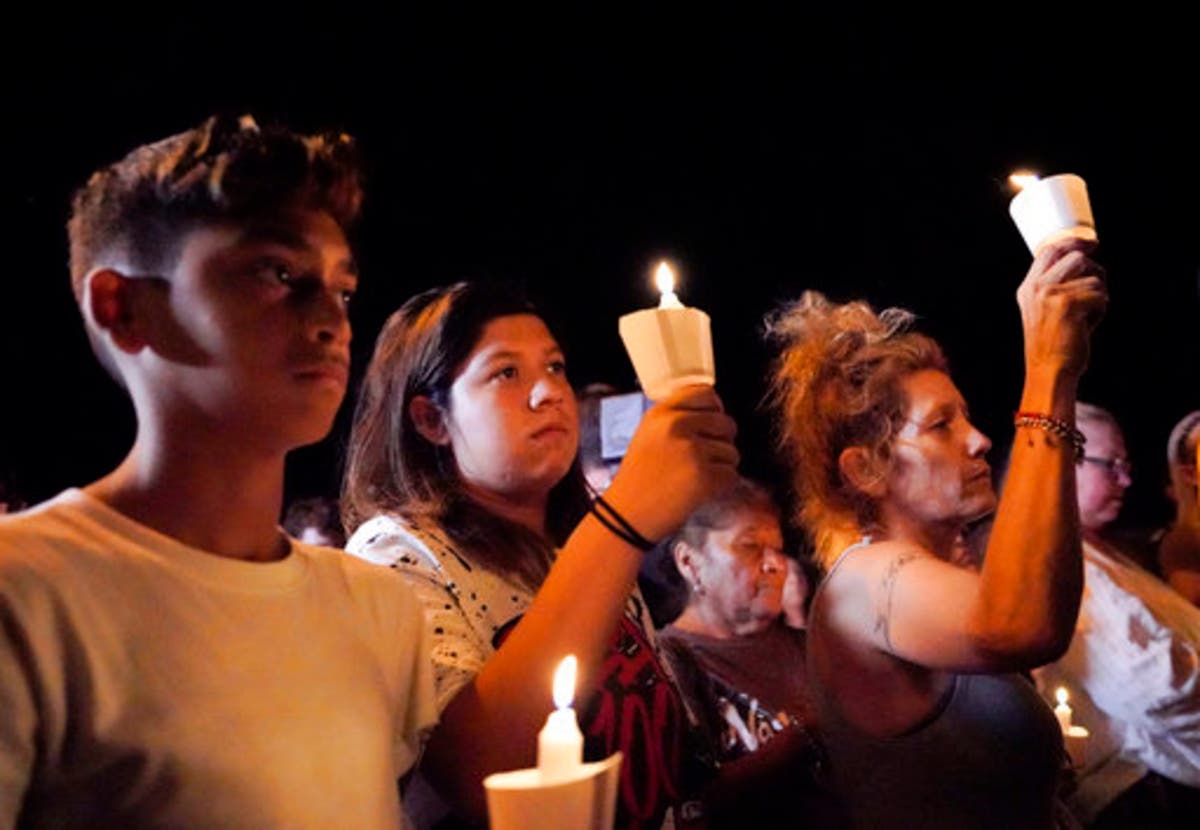 Mourners participate in a candlelight vigil held for the victims of a fatal shooting at the First Baptist Church of Sutherland Springs, Sunday, Nov. 5, 2017, in Sutherland Springs, Texas. (AP Photo/Darren Abate)
