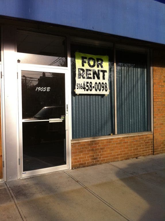 Among the eateries, nail salons and auto repair shops on Bellmore Avenue--vacant storefronts remain.