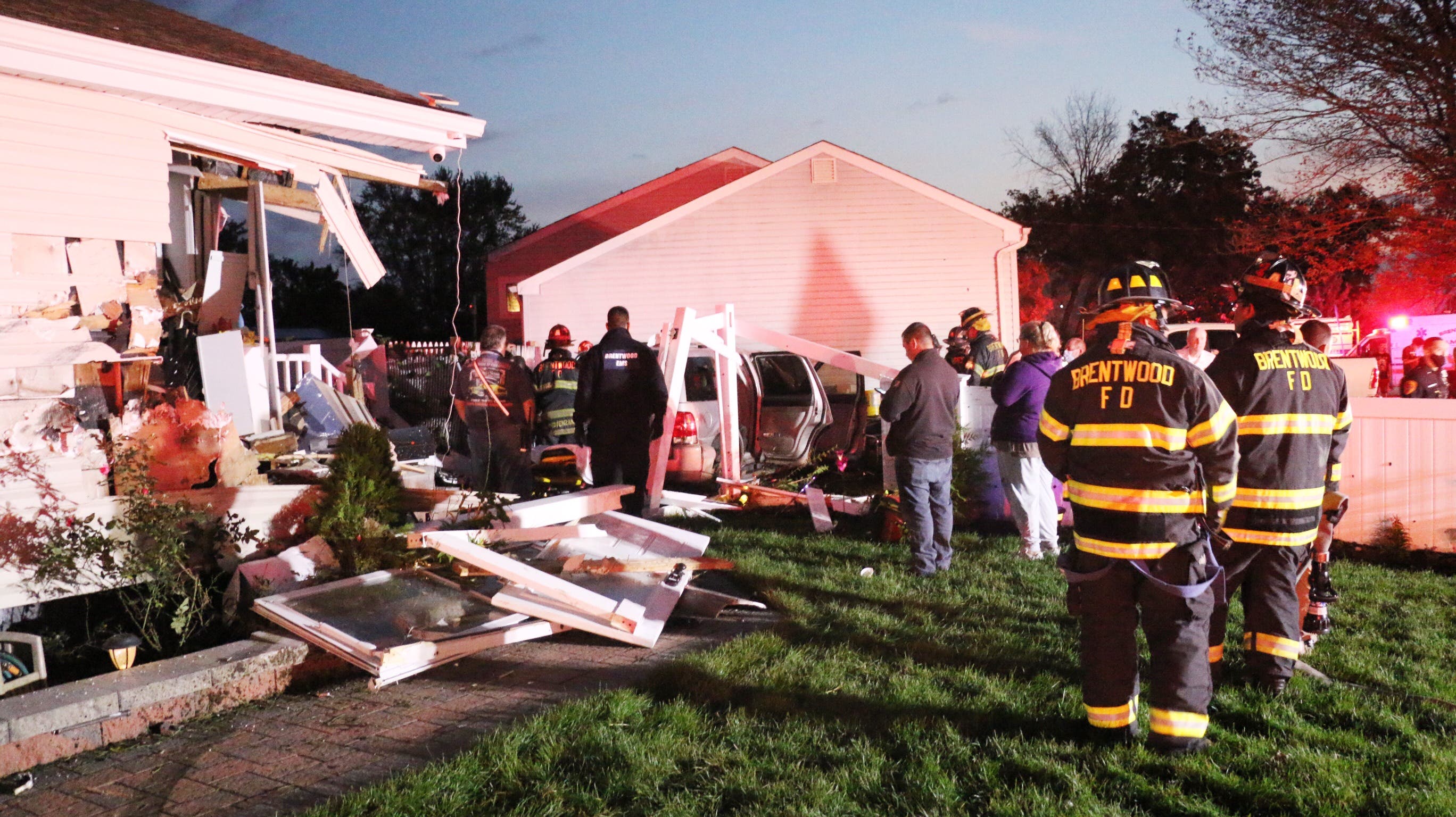 BRENTWOOD, NY — A Bay Shore woman was drunk with her three children in her car when she crashed through a Brentwood home Sunday night, Suffolk police said.