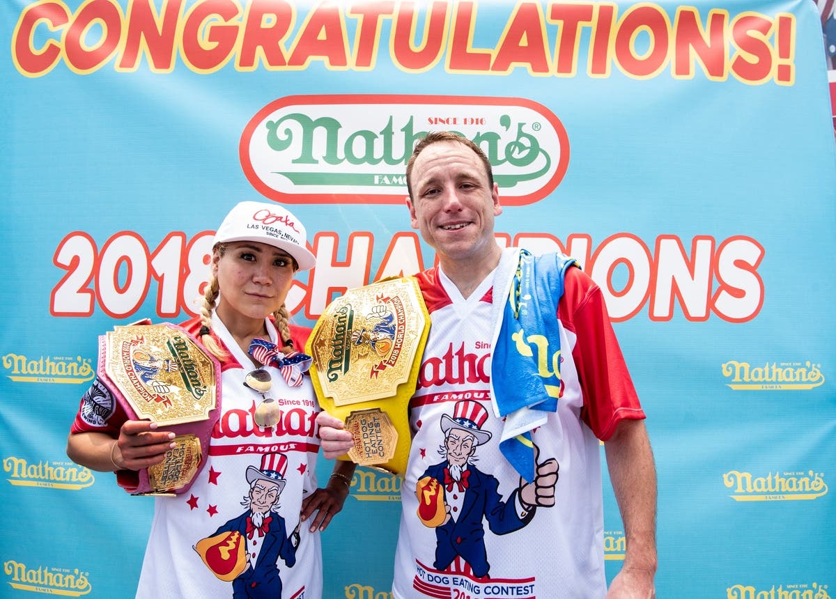 Chestnut currently holds the world record and Coney Island record of 74 hot dogs and buns in 2018.