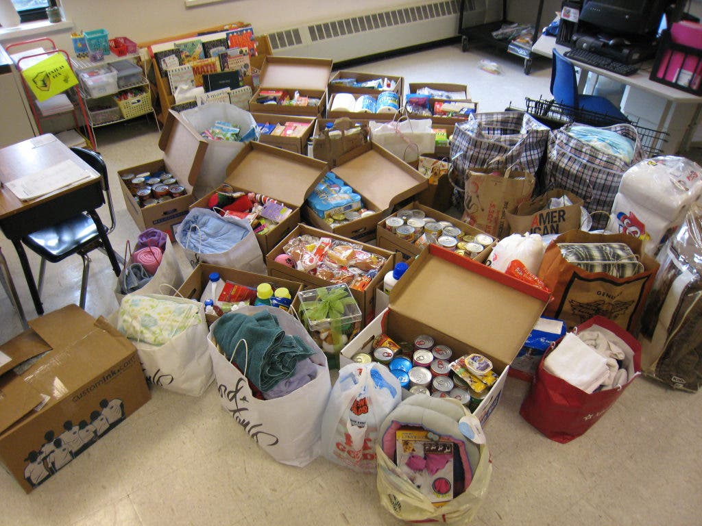 Loriann Cassaro’s second grade class in the Greenvale Elementary School in Eastchester organized a collection for the New Rochelle Humane Society. The organization is a privately funded one that cares for dogs and cats who have been lost, abandoned, injured, and mistreated.