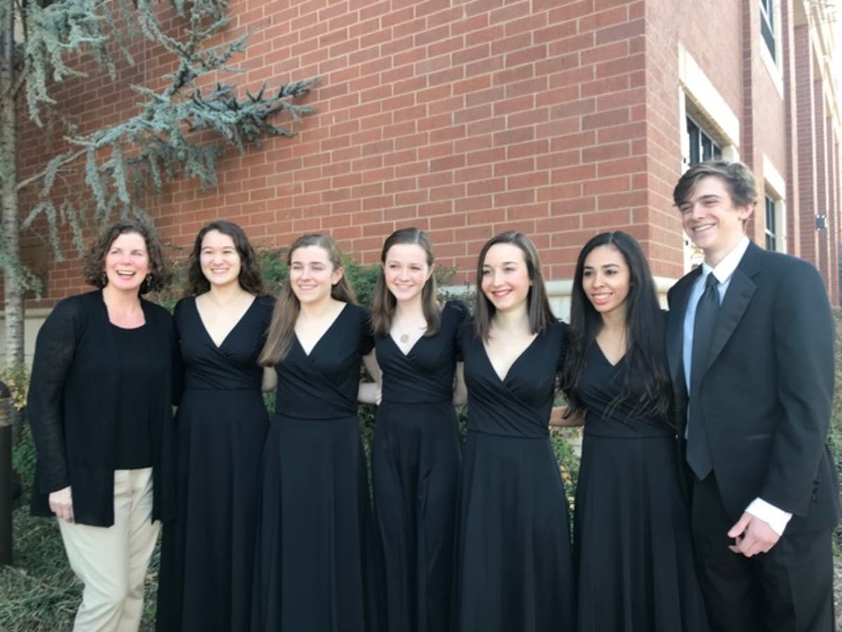 Junior Jack Palermo performed with the Chamber Ensemble, which performed eight pieces, all a cappella, under the direction of Hungarian conductor Lilla Gabor. Seniors Hana Eddib, Margaux Frohlich and Evelyn Kluemper, sophomore Alice O’Connell and freshman Caroline Palermo performed with the Concert Women’s Choir, which performed under the direction of composer and conductor Dr. Andrea Ramsey.