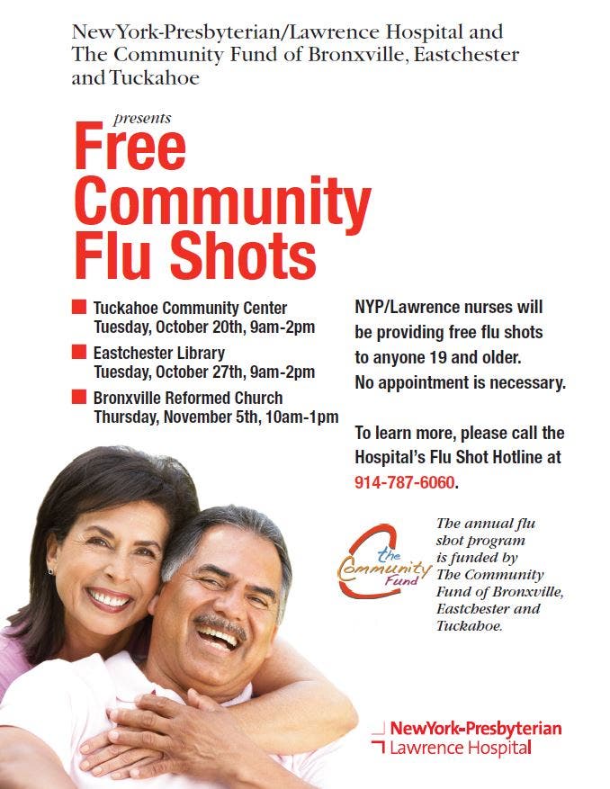 NewYork-Presbyterian/Lawrence Hospital and The Community Fund of Bronxville, Eastchester and Tuckahoe are offering free flu shots.