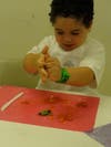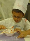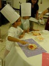It's about 10 a.m. on a Thursday morning, and a group of eight mostly 4- and 5-year olds are wearing paper chef hats as they spread sauce over individual pieces of dough, making their own pizza.