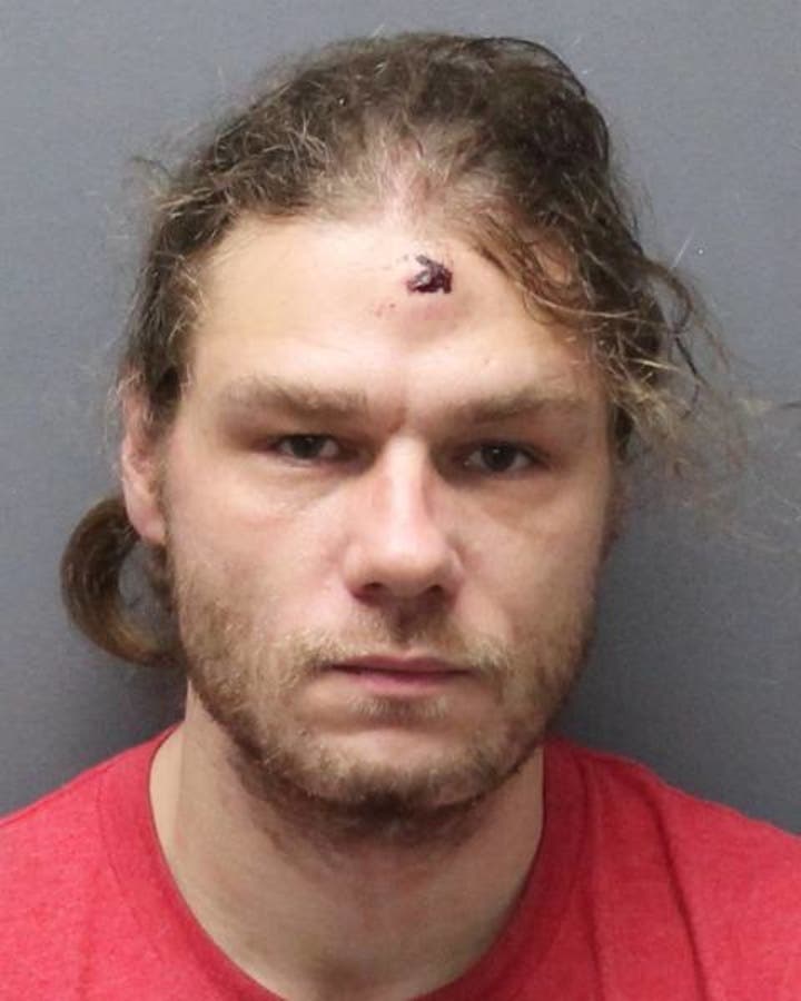 Police said he repeatedly banged his head against the police car partition after being taken into custody.