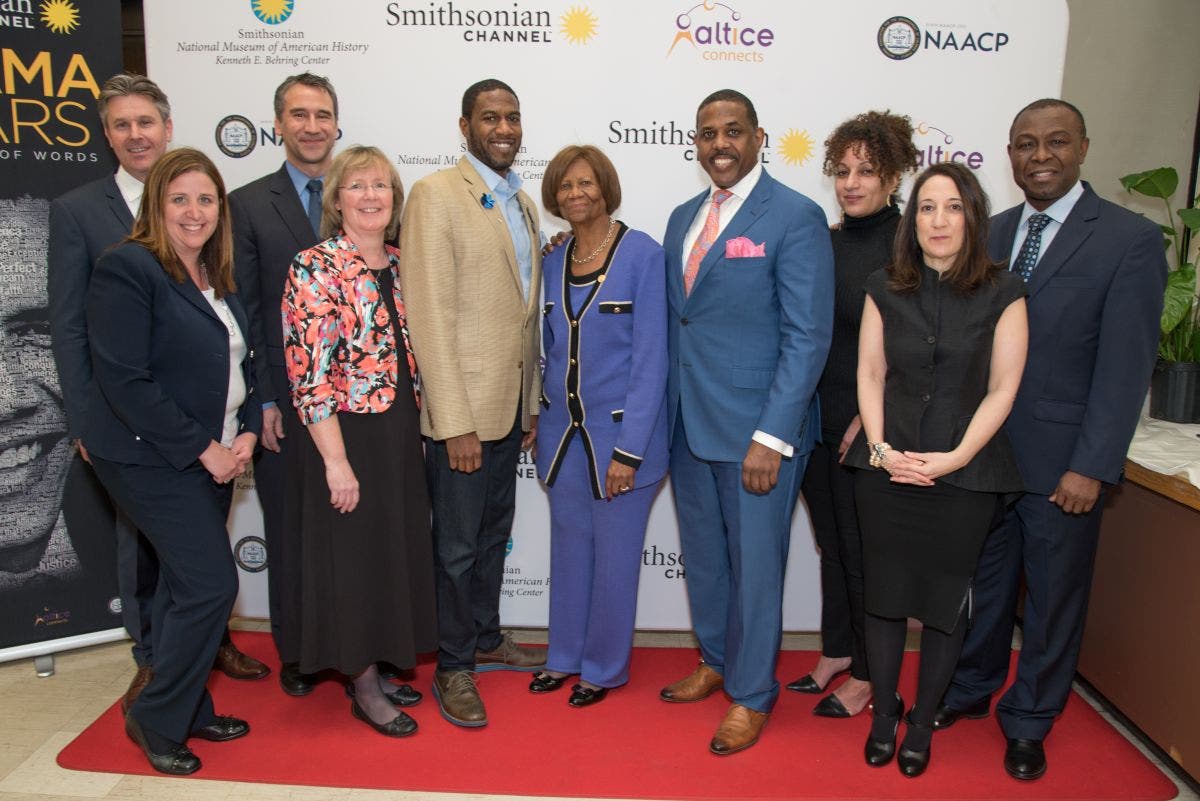 Pictured (left to right): Charles Poe, Smithsonian Channel; Jen Ostrager, Altice USA; Dan Ahouse, Altice USA; Dr. Claire Jerry, National Museum of American History; NYC Councilman Jumaane Williams; Dr. Hazel Dukes, NAACP; NYS Senator Kevin Parker; Dr. Maria Delongoria, Medgar Evers College; Dana DeSanto, Smithsonian Channel; Dr. Augustine Okereke, Medgar Evers College