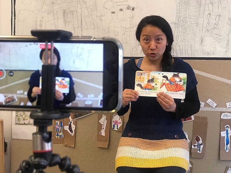 “In a sun-soaked Brooklyn classroom, Huan Ren reads aloud ‘The Three Little Pigs’ in Mandarin. The pre-K teacher balloons her cheeks to mime the big bad wolf blowing down the straw house. She is reading before a smartphone, recording in an empty room,” the article reads.